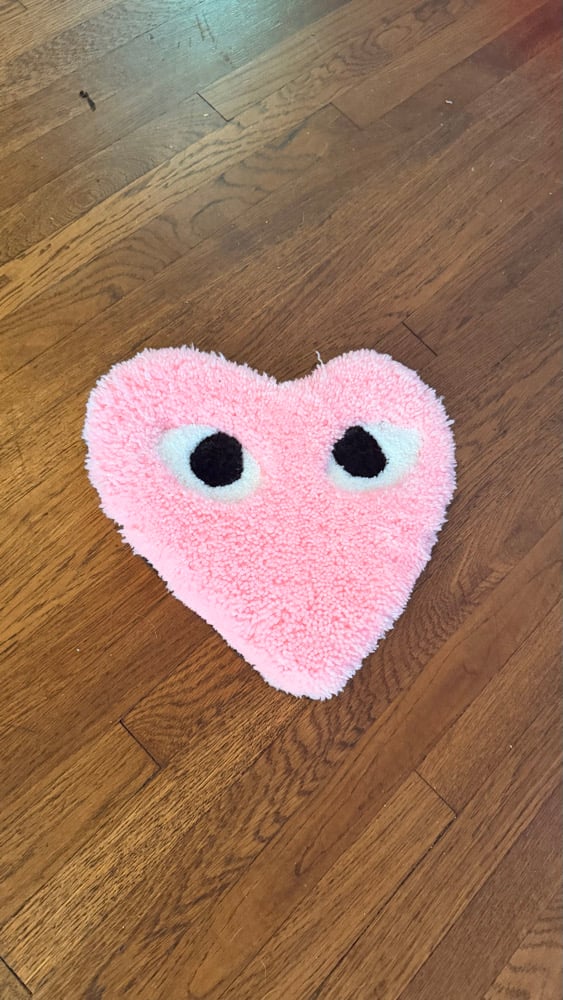 Hand-tufted using premium yarn and carved. One of one made— to live on your floor, wall, clothes, or wherever you want